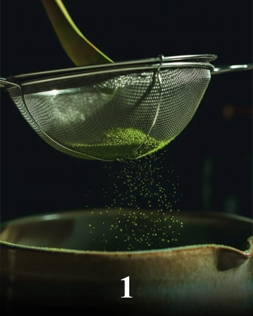 1–2 g Matcha in eine Schale sieben.