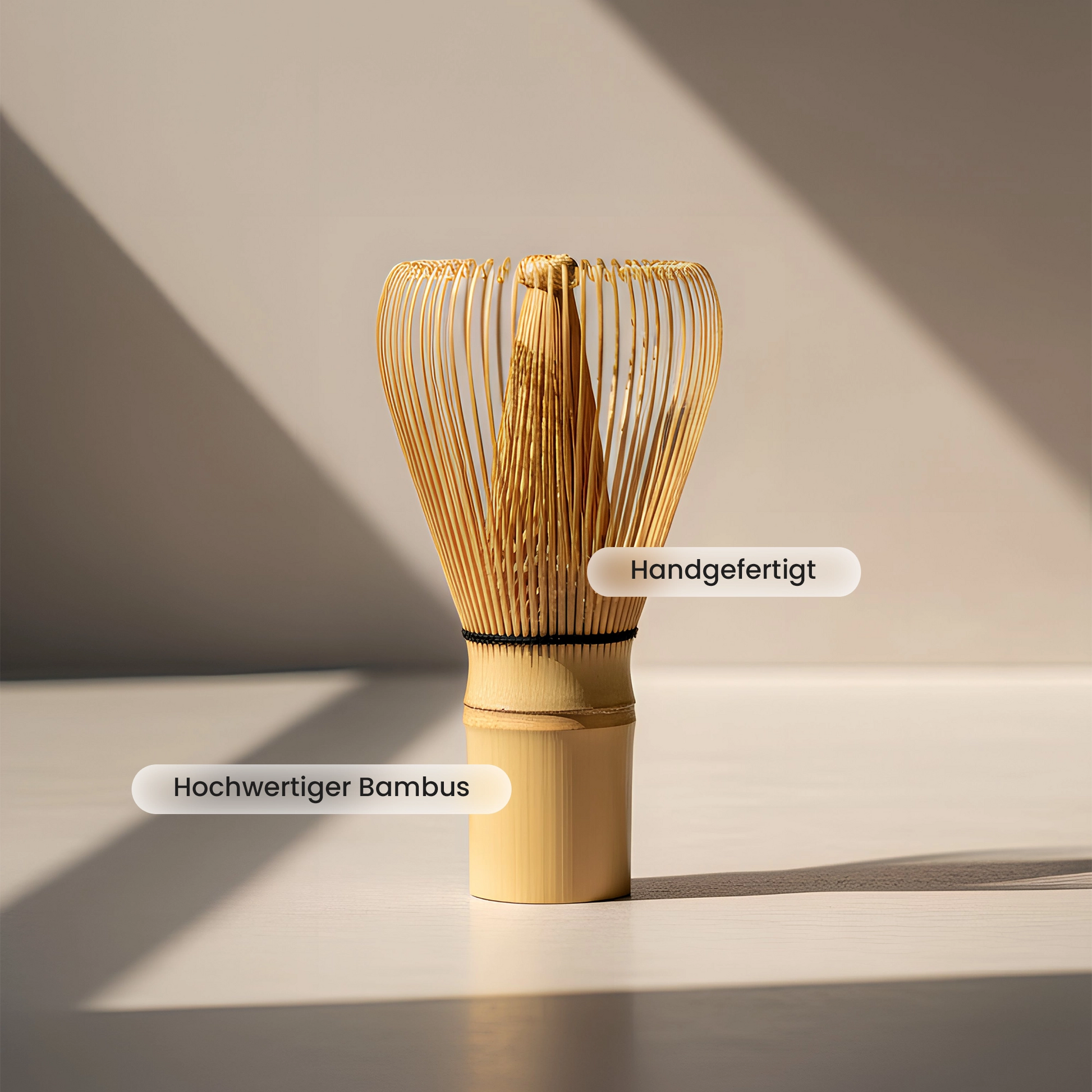 Die elegante Chawan, der fein gebundene Bambus-Besen und der minimalistische Chasen-Halter sorgen nicht nur für Funktion, sondern werden zum Hingucker in deiner Küche. Perfekt für alle, die Wert auf Ästhetik, Qualität und bewussten Genuss legen.
